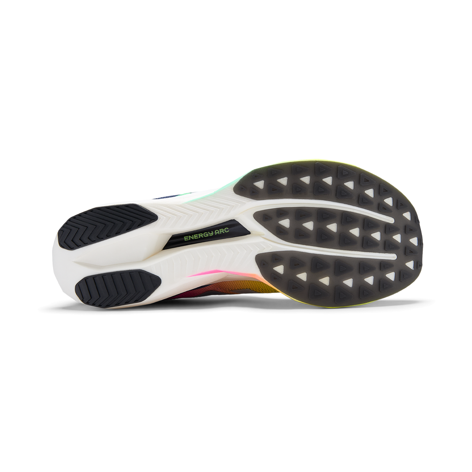 Energy Arc pairs sport-specific carbon fiber plate geometry with strategic midsole voids, designed to increase stored energy to deliver a higher amount of total energy returned