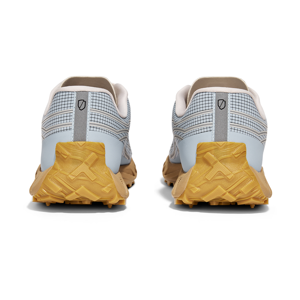 A lower stack height provides increased ground feel and heightens your connection to the earth. A padded heel collar and pyramidal midsole geometry promotes confident footing in technical environments, allowing you to reach new heights.