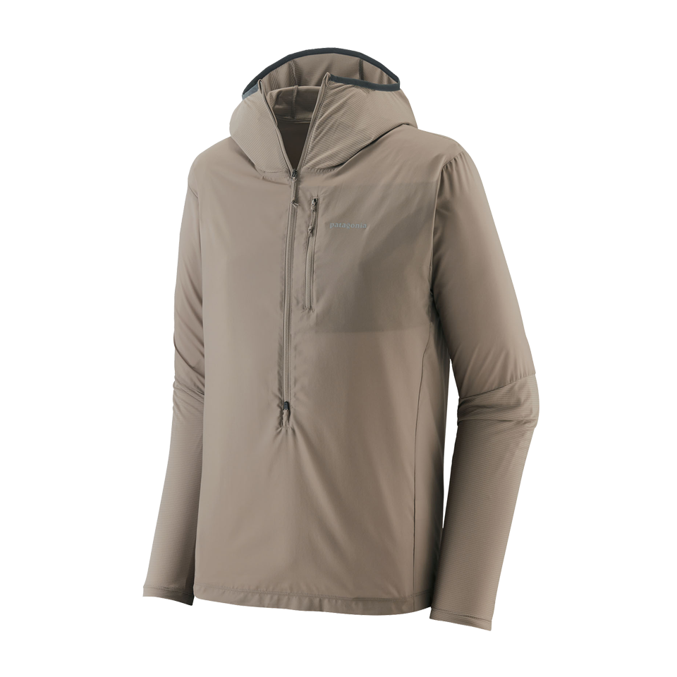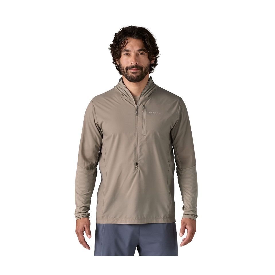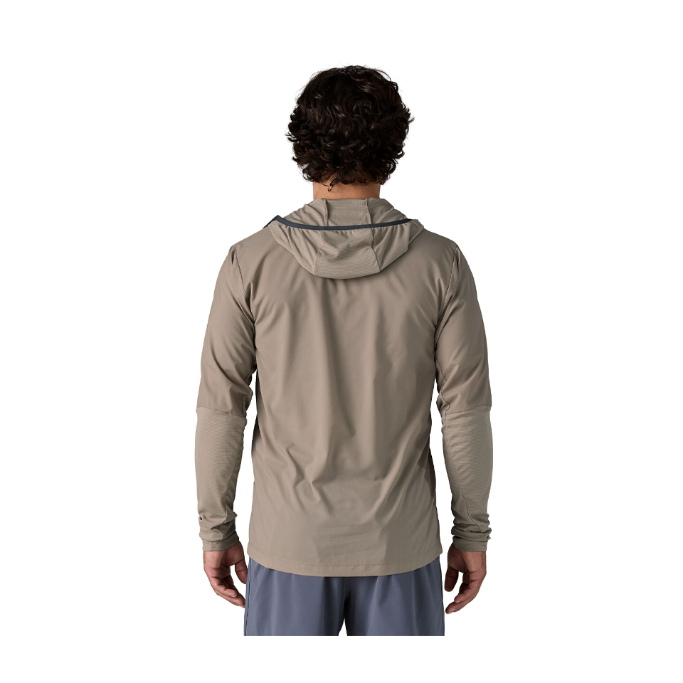 This water-repellent wind shirt is a no-brainer for runs in uncertain mountain weather. It's fast drying, ultralightweight and breathable, with a stretch-knit hood and lower sleeves, and a durable water repellent (DWR) finish made without intentionally added PFAS. And, it packs into its own pocket for easy stowability. Made in a Fair Trade Certified™ factory.