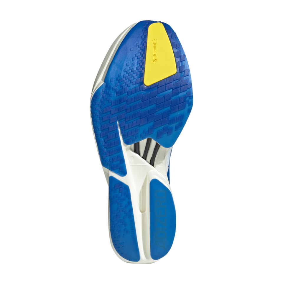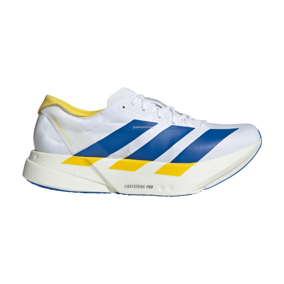 Proven to be the world's most winning shoe, the Adizero Adios Pro line is the pinnacle of Adizero Racing shoes. The Adios Pro 4 is made for fast runners who want to experience faster, with enhanced features designed to optimize running efficiency. Our carbon-infused ENERGYRODS 2.0 provide a seamless transition from heel to toe for a snappy, efficient stride. In the midsole, a new rocker point offers improved running economy. A double layer of our best-in-class ultralight LIGHTSTRIKE PRO ensures cushioning for every quick stride you take, helping you maintain energy over the long term. The shoe rides on an outsole built with Continental™ rubber for a no-slip transition during toe-off, as well as LIGHTTRAXION, designed to reduce weight without sacrificing grip.